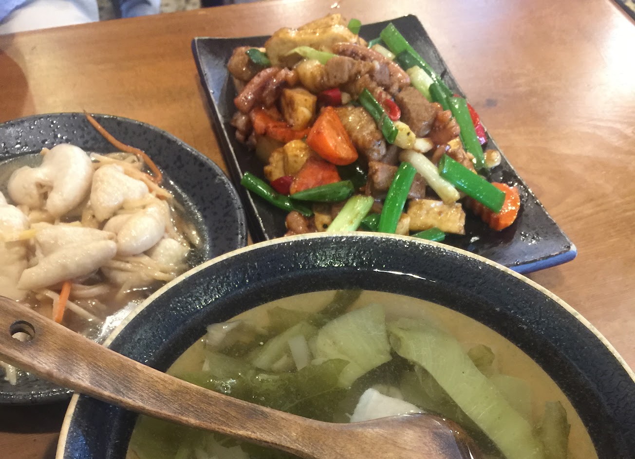 整體來說,各菜色其實不難吃(只是味道太淡),服務雖然忙碌,但是服務人員的態度與速度也還可以,但正值午餐高峰期,上菜速度稍微慢了一點。沒有特別突出的菜,但是每一道菜的味道都太過於清淡,甚至還需要請店家提供辣椒醬油來沾每一道菜(皺眉)。