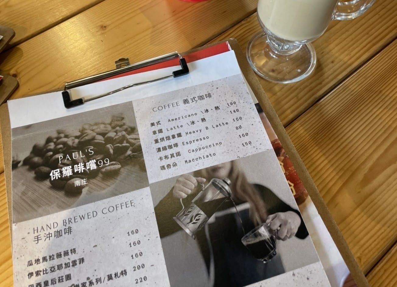 保羅啡嚐99 是一家非常令人驚喜 讚嘆的咖啡餐飲店,店裡窗明几淨 裝潢整潔乾淨明亮,店內擺設有壘球,高爾夫球具,黑膠唱片,音響 ,自烘咖啡豆,還有各式各樣的手沖濾杯,從這裡就可以看出主人的品味和專業。手沖咖啡很專業,有一定水準絕對比得上咖啡名店。今天來這裡吃中餐,牛肉麵鮮明平衡的湯頭充分搭配軟嫩厚實的牛肉,令人回味無窮,這樣的等級絕對拼得過台灣的牛肉麵名店。 麵包也非常好吃,點了肉桂捲,甜香適中的肉桂味非常好吃。老闆和老闆娘非常親切好客讓我們度過了一個非常愉快放鬆的中餐時光。 以後來苗栗南莊一定會再來這裡,非常樂意推薦大家,一定要把保羅啡嚐99列入必定拜訪行程。