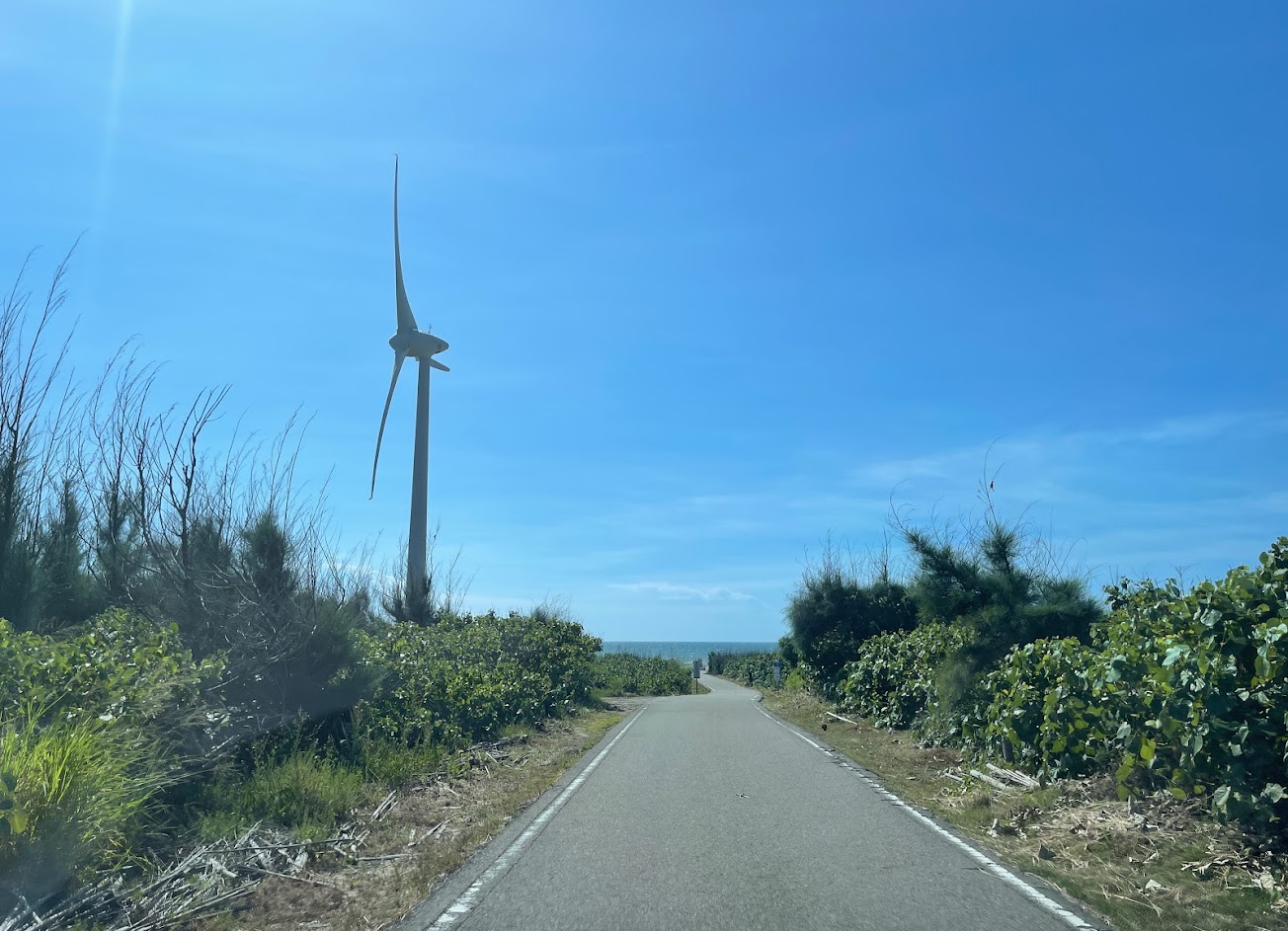 擁有很大很大的風車點綴,很寬很寬的海洋伴舞,很強很強的風鼓勵著
