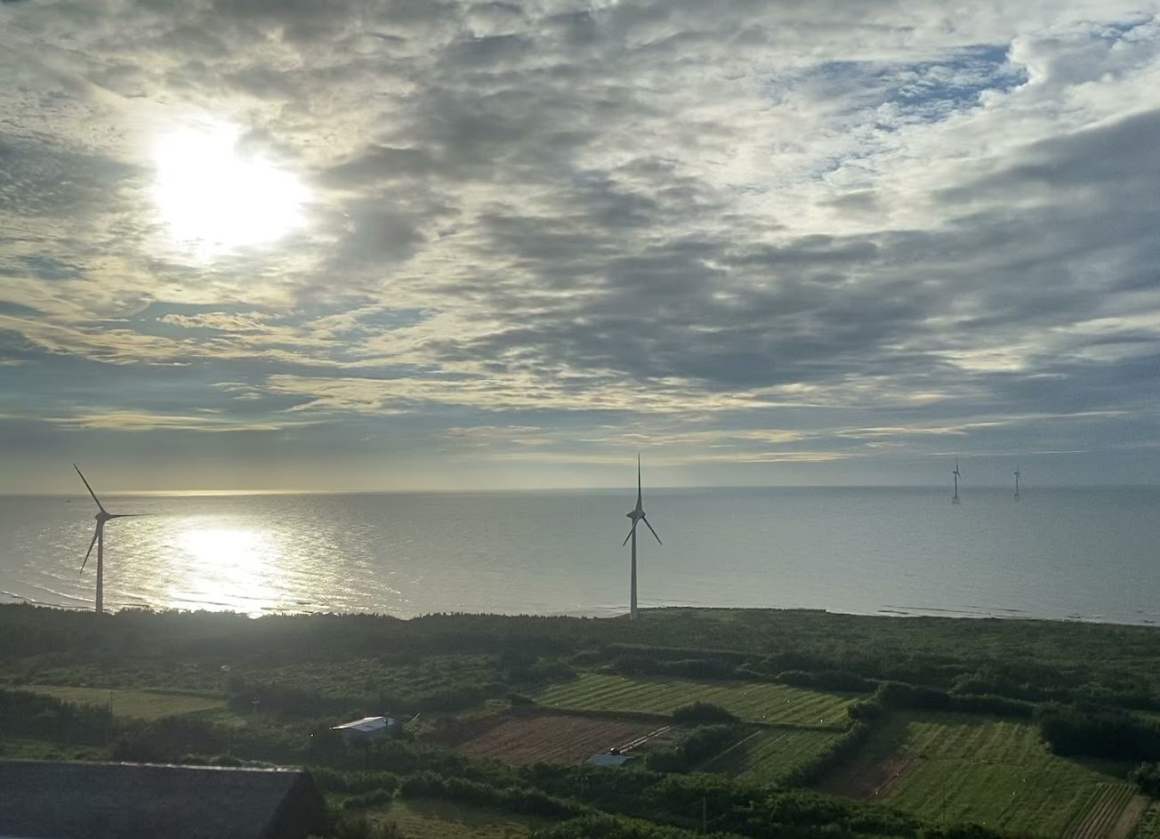 之前拜訪經濟部能源局,提到台灣現階段綠能的建設與政策;在這裡除了可以看到沿岸許多風力發電機組,再往遠方看去,也可以看到竹南外海有台灣第一個離岸風電示範場域。目前已經有22座海上風電機組在這邊商轉。