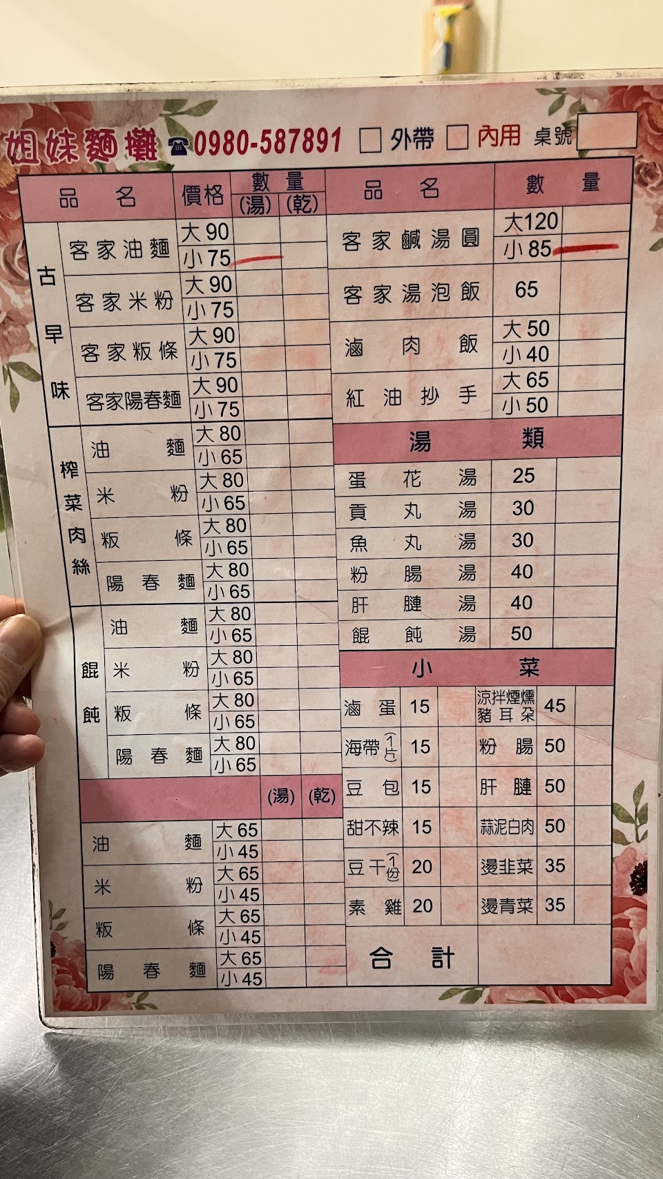 2024最新在地推薦餐廳的菜單_姐妹麵攤的菜單、圖片