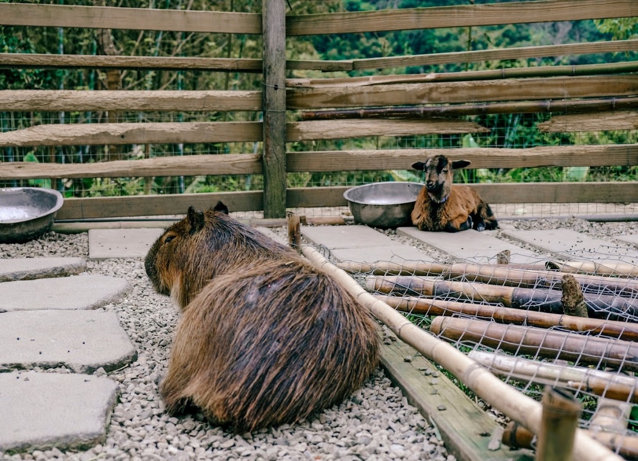 整體園區雖然很小,但是可以來到深山裡欣賞風景跟看看可愛的水豚跟小羊還是不錯的體驗~(要跟小羊或水豚互動需買$30的牧草)
