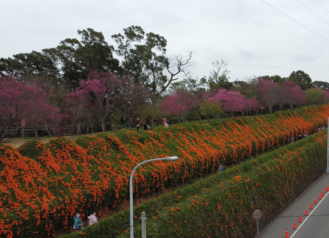 有規劃.分三層.即上有櫻花中下層炮仗花牆相互照應.非常美也非常好拍可見當初的用心很棒.环境也非常清潔.