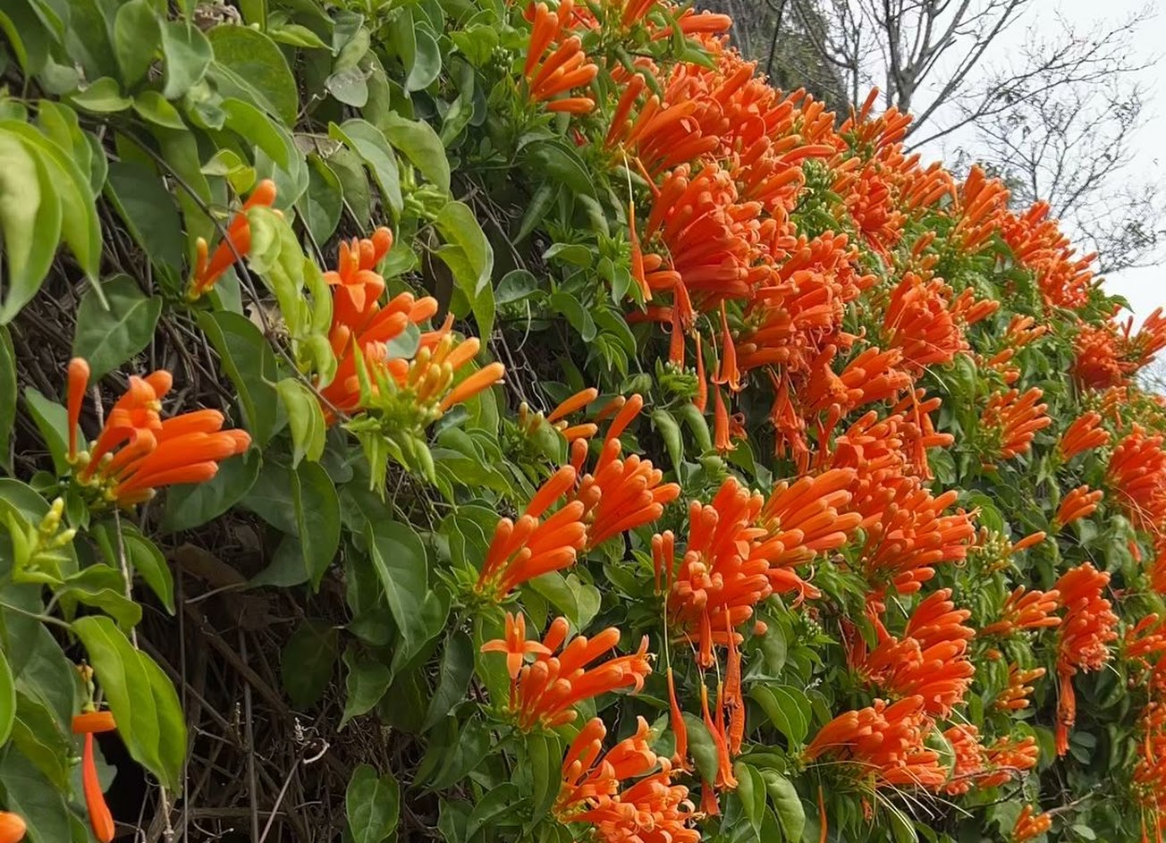 現在2月已下起炮仗花海的花瀑布,這裡有數以千計的花苞及花朵聚集在一起掛在花絲上,延綿數百公尺盛開的花海真的令人驚艷!