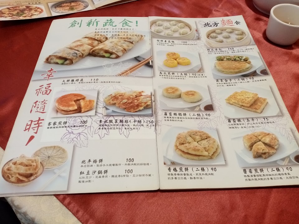 紅豆沙鍋餅, 鐵板猴頭菇, 素食鍋貼, 北平烙餅, 香煎干貝, 酸辣湯, 夏威夷炒飯, 宮保臭豆腐, 魚香茄子