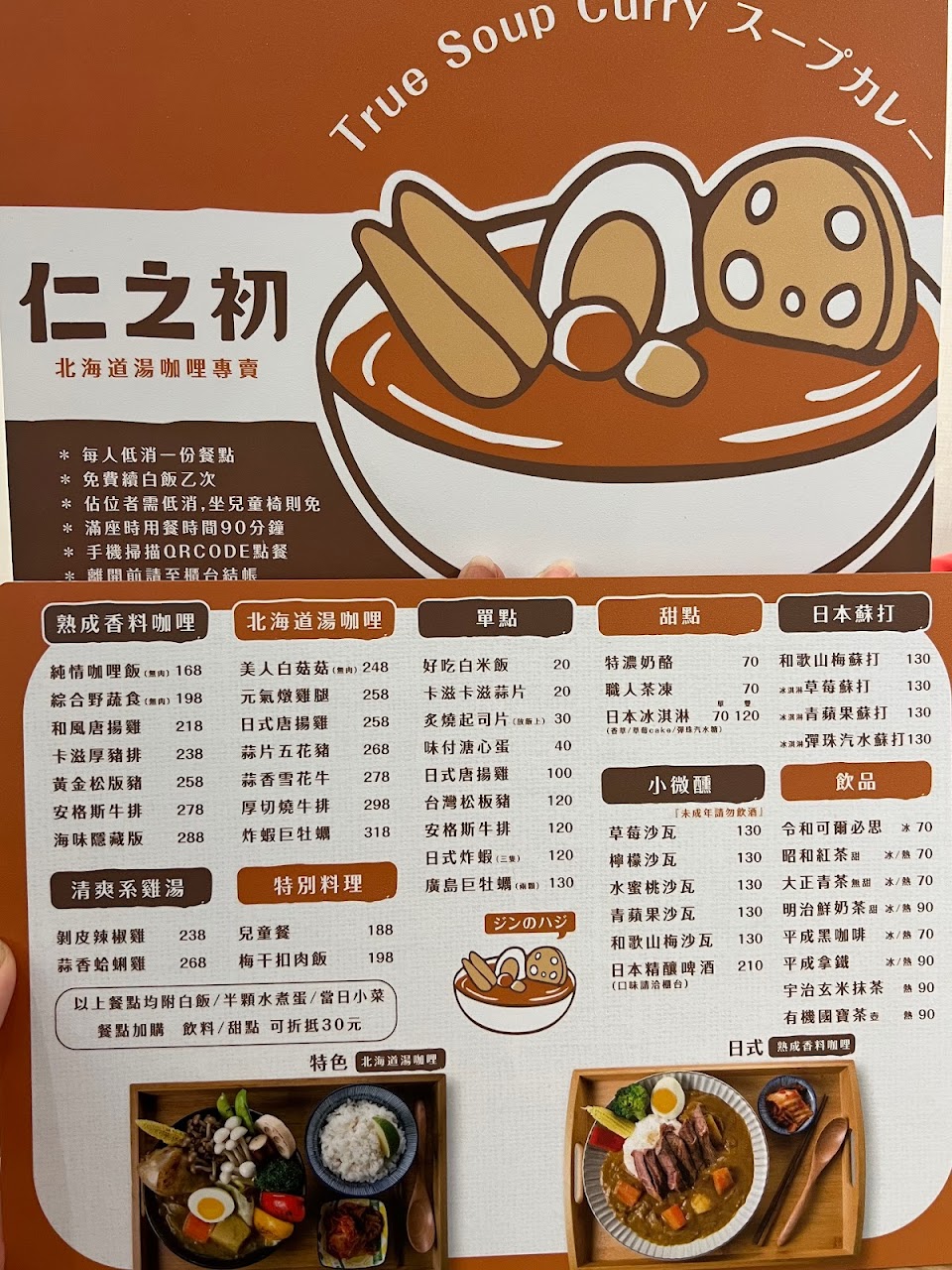 2024最新在地推薦餐廳的菜單_仁之初 北海道湯咖喱專賣(彰化店)的菜單、圖片