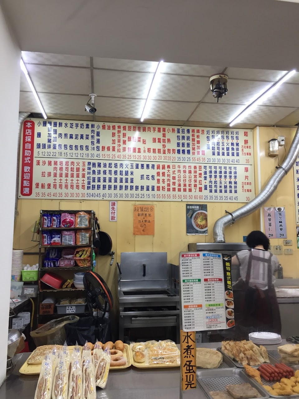 豆漿拉麵, 鮮肉煎包, 小籠湯包, 卡拉, 蔥蛋, 小籠包, 蔥抓餅加蛋, 韭菜盒, 煎餃, 燒餅油條, 蘿蔔糕炒蛋, 鍋燒意麵