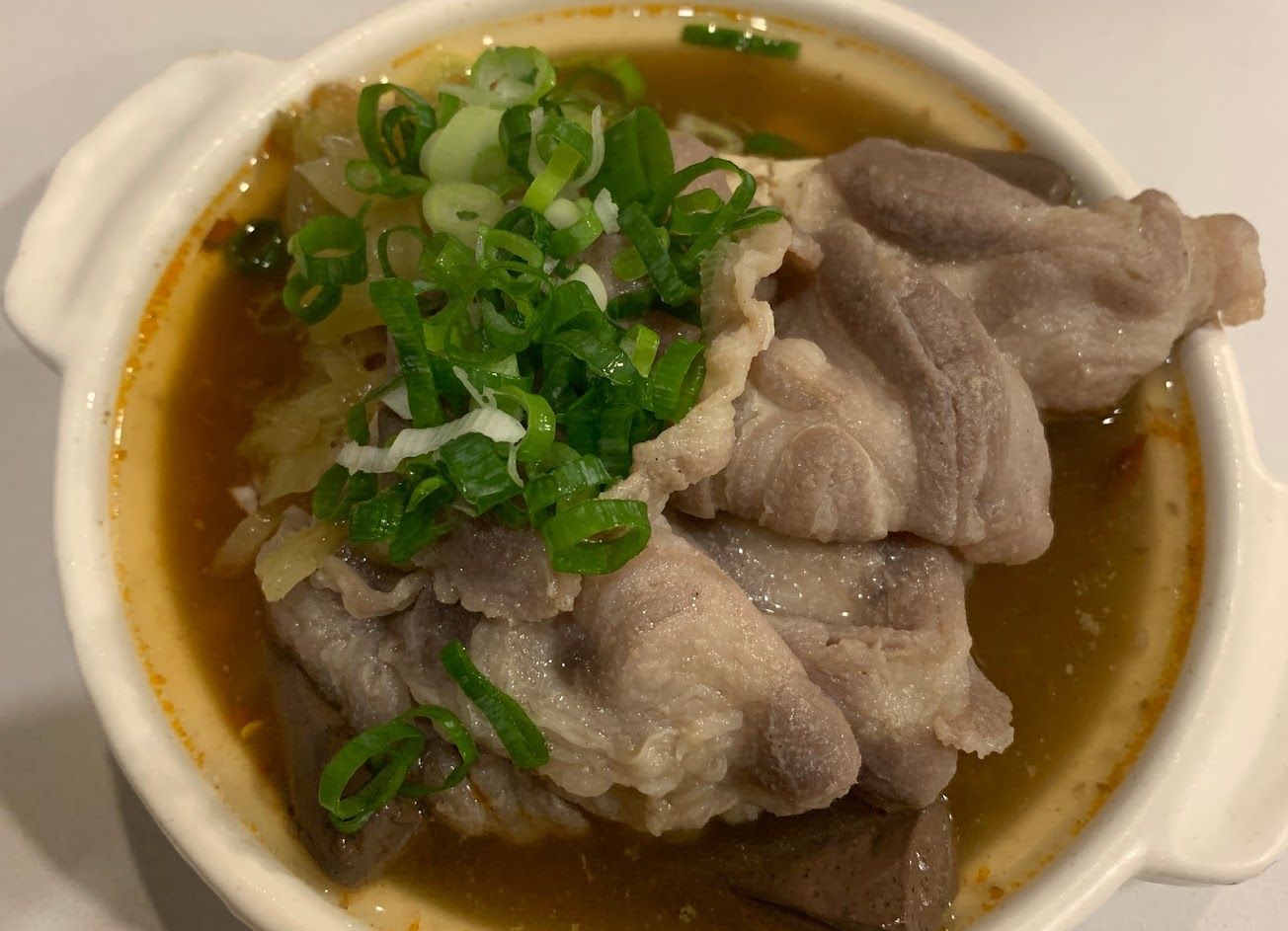 點了豬肉鍋,結果裡面只有2個鴨血超薄超小