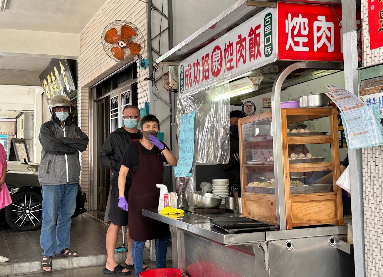 生意很好, 位置在騎樓間, 排隊分成內用跟外帶兩邊排隊, 控肉味道不錯, 喜歡瘦一點或肥一點或Q一點可以跟店家說。 青菜一般、香腸一般。 坐在攤位前面內用的話是沒有冷氣的。 排隊的時間看人潮而定, 通常也不會太久。 價位算是親民。