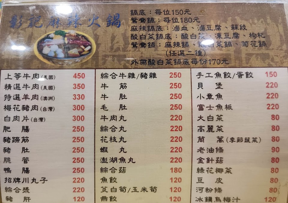 2024最新在地推薦餐廳的菜單_彰記麻辣火鍋的菜單、圖片