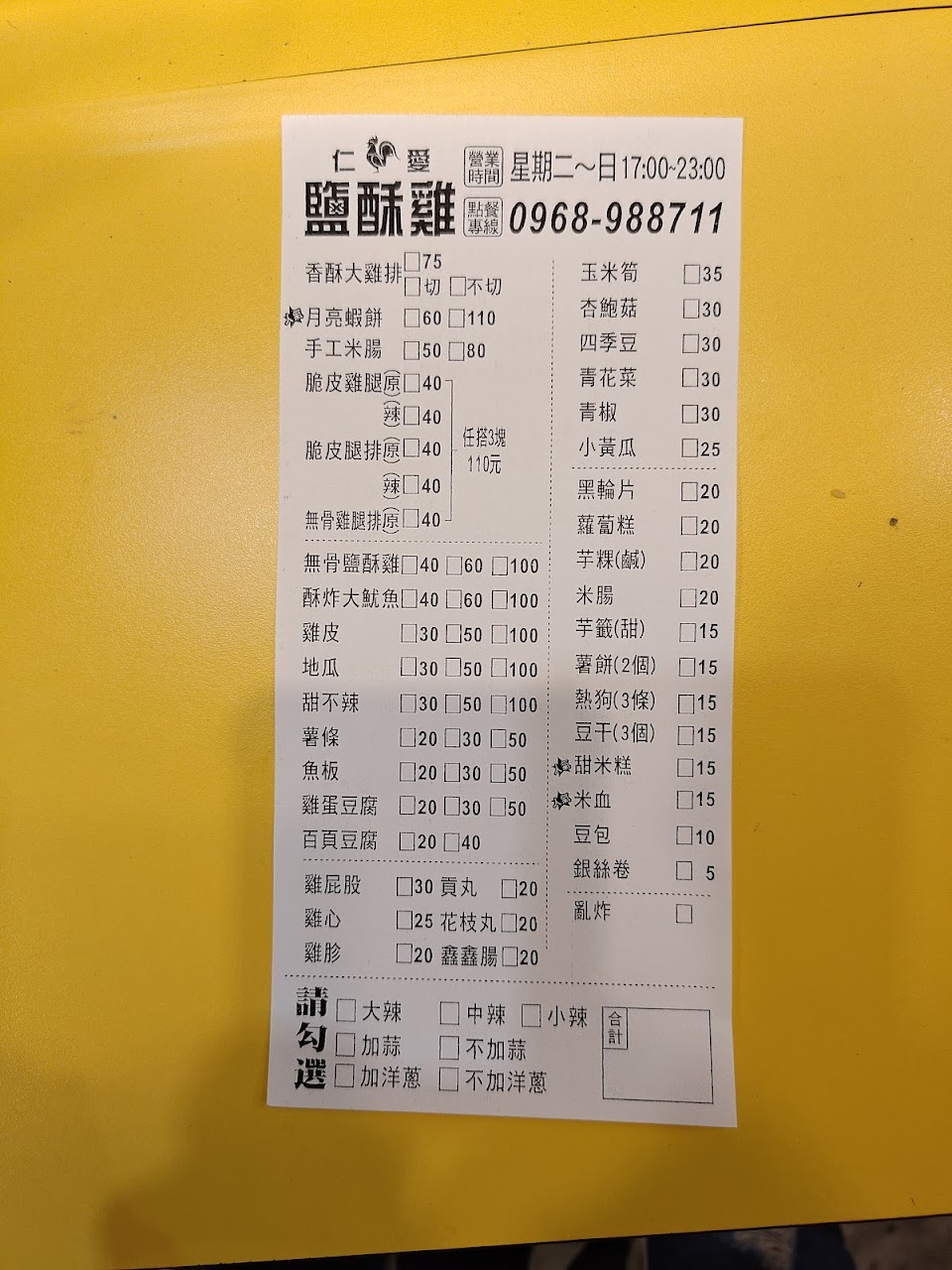 2024最新在地推薦餐廳的菜單_仁愛鹽酥雞(彰化唯一總店)的菜單、圖片
