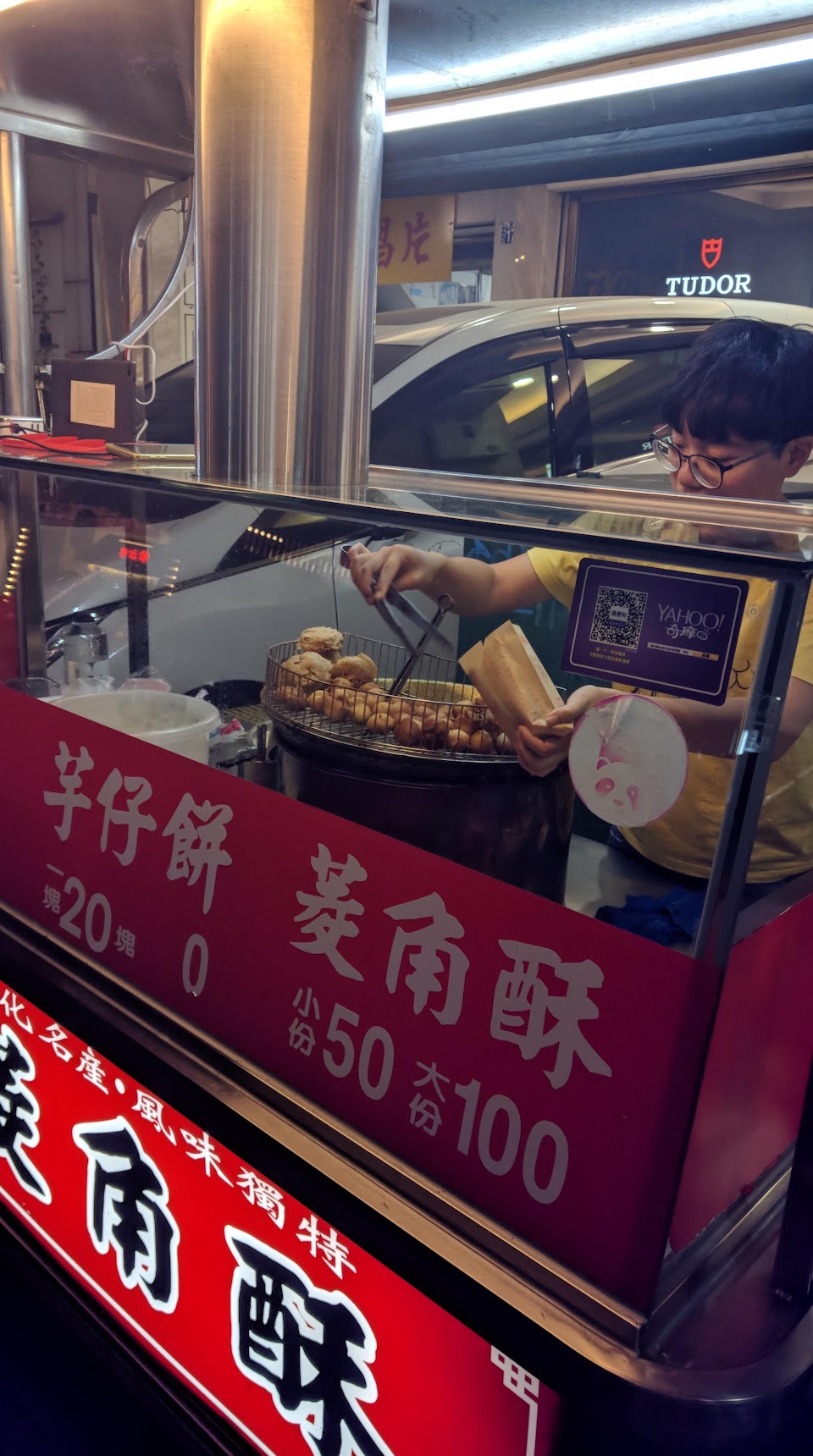 一份50元的菱角酥外觀好似地瓜球 鬆軟的菱角塊不但甜而且外皮酥的唰嘴 雖然沒很愛菱角可是這個真的好好吃哦? 芋仔餅一個廿有點高價但吃進嘴裡也是意外口感 不是炸鮮奶的皮也不是酥皮派的脆 有點像是天婦羅的感覺包裹超甜超綿密芋泥 兩樣都好好吃哦,經過一定要買唷!?