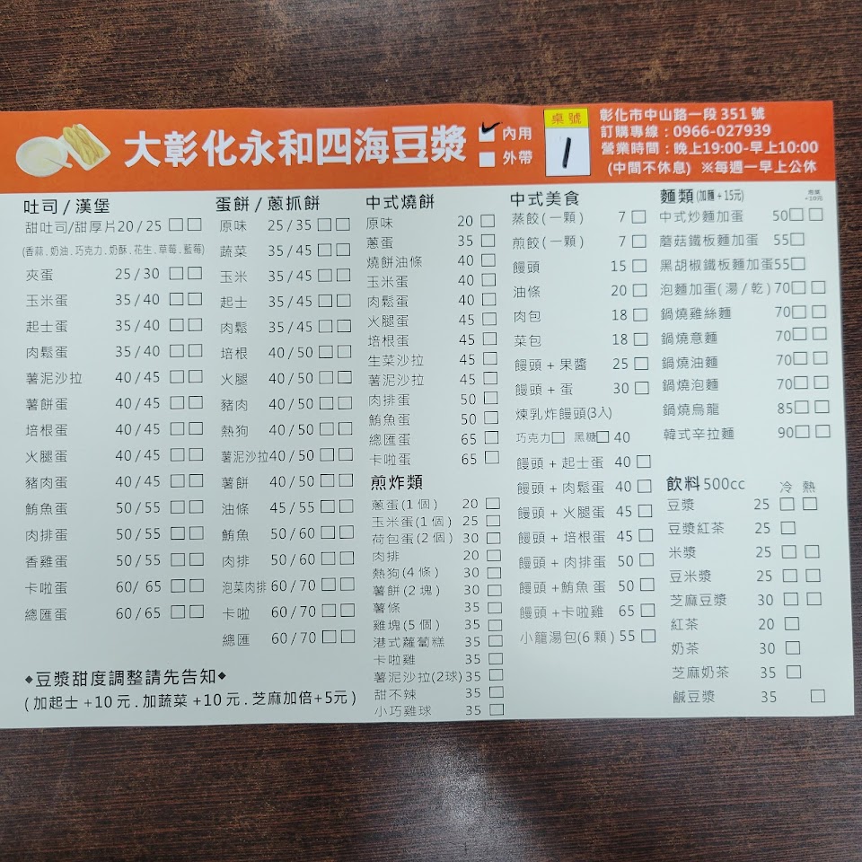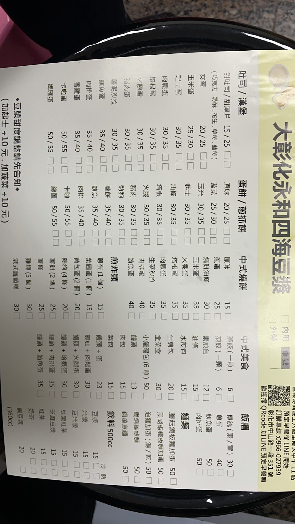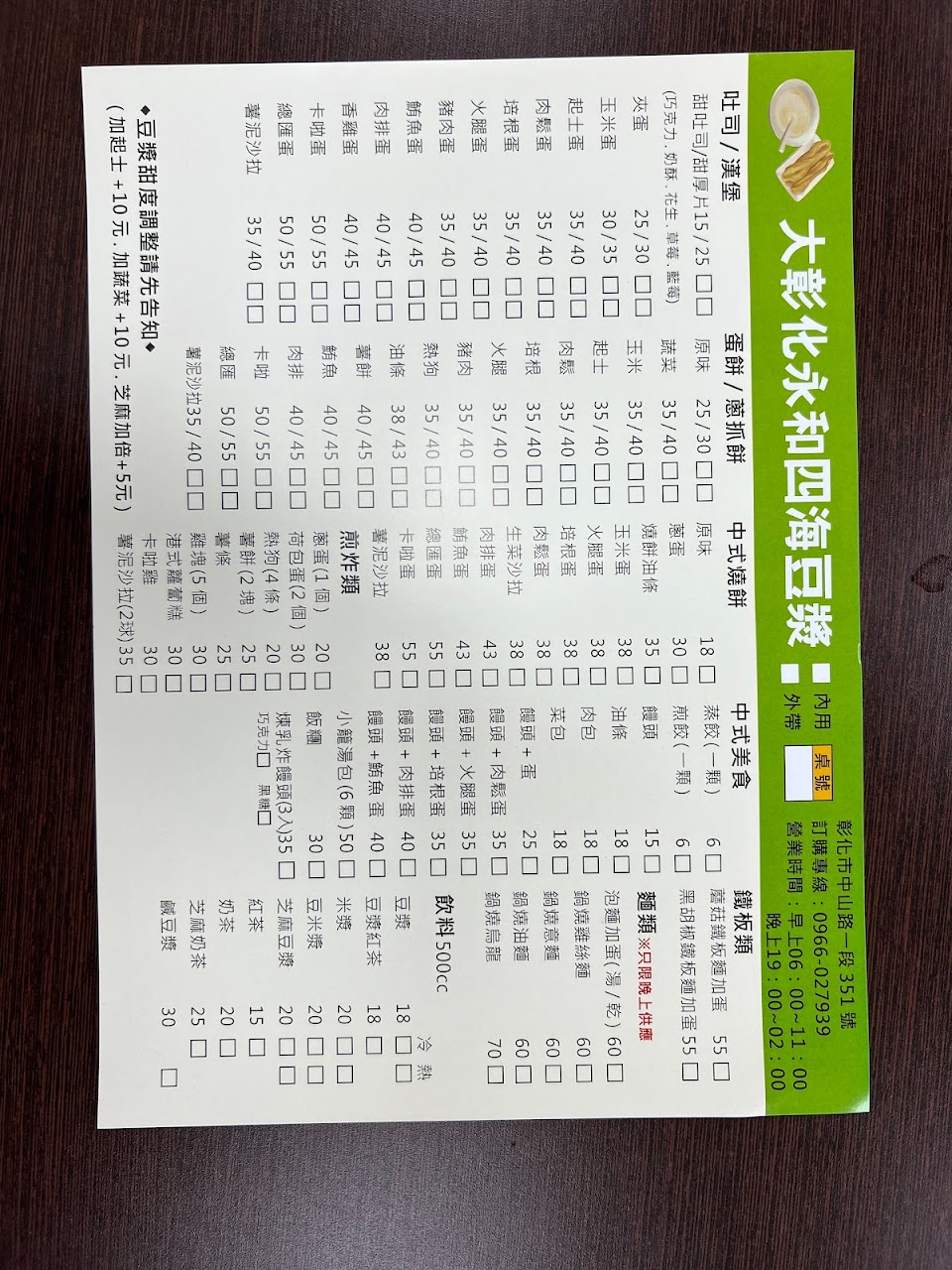 2024最新在地推薦餐廳的菜單_大彰化永和四海豆漿的菜單、圖片