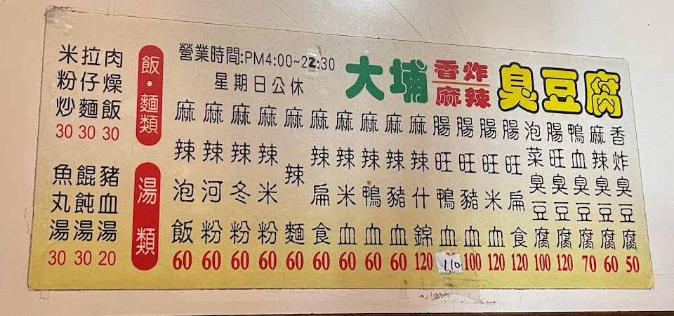 2024最新在地推薦餐廳的菜單_大埔臭豆腐的菜單、圖片