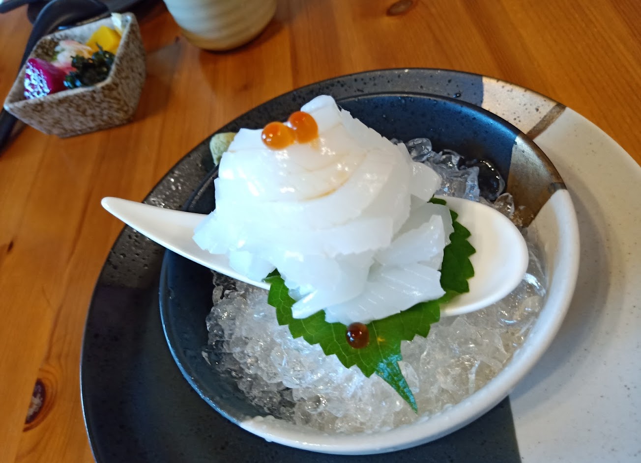 生魚片好吃 各類小點份量少但都不錯 價位不算低 而且室內真的太熱越吃越熱 建議去要穿背心跟短褲 不然無法久坐 外帶回家或許比較可以慢慢享用噢 好吃的? …