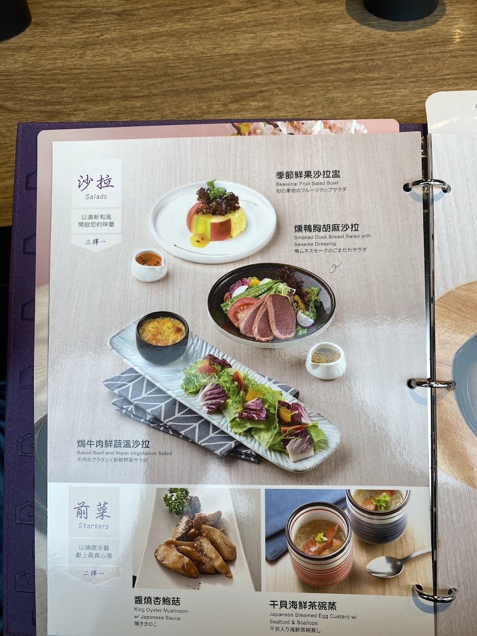 干貝海鮮茶碗蒸, Smoked Duck Breast Salad with Sesame Dressing