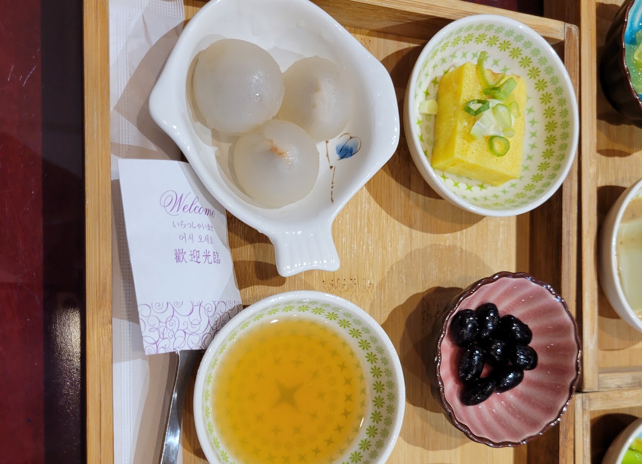 小熊很可愛而且還是用鮮奶做成的,小菜也很不錯每個人都不一樣,咖啡凍不錯吃,蘿蔔好像有加柚子醬吃起來很清爽