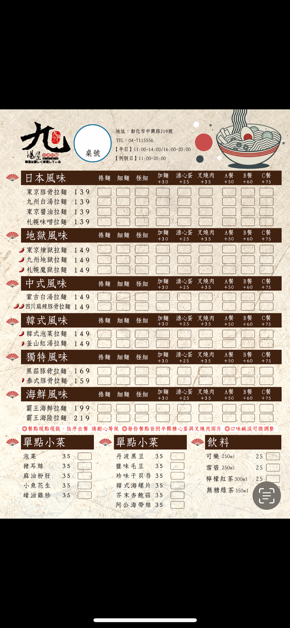 2024最新在地推薦餐廳的菜單_九湯屋日本拉麵 彰基店的菜單、圖片
