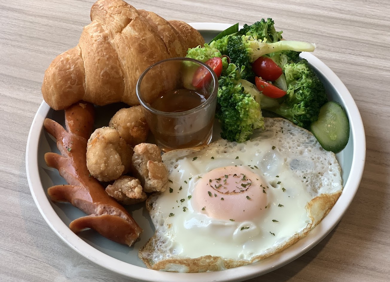 可頌溫熱鬆軟 蛋的熟度剛好 食材新鮮 擺盤也滿足了視覺 有吃光光