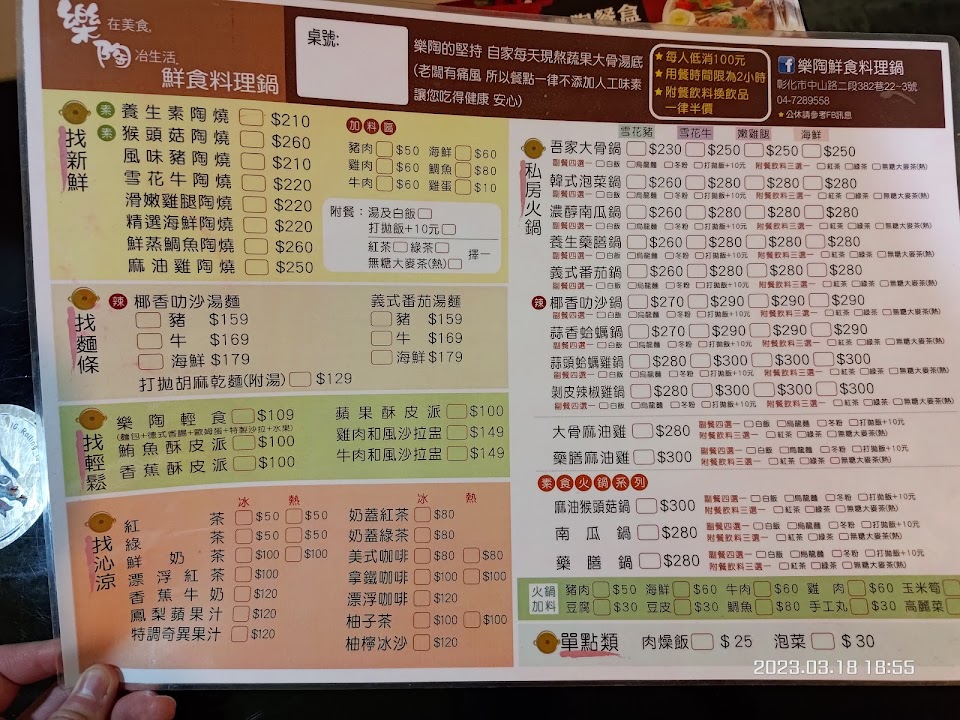 2024最新在地推薦餐廳的菜單_樂陶鮮食料理鍋(店休時間請參考臉書)的菜單、圖片