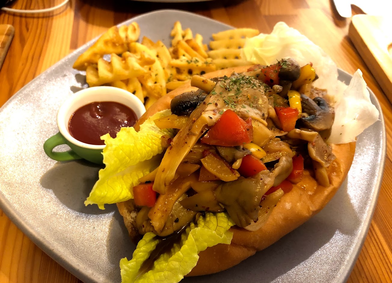 舒適又悠閒的咖啡館,店家對各種社會議題非常關心,可以在店裡拿到許多環境與在地關懷、動物保護相關的介紹單張。餐點也蠻好吃的,照燒蘑菇潛艇堡調味微辣略甜,很有意思,但潛艇堡麵包體太韌了,有點可惜。