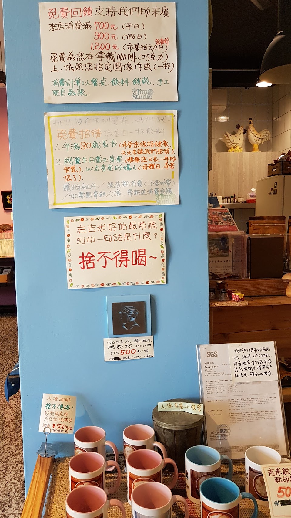 吉米好站不只是喝咖啡還有很濃厚的藝術氣息,因為他們會在店裡免費提供場地給素人藝術家佈展,每個月都會有不同的藝術家的作品在這裡供來這喝咖啡休閒的客人欣賞,重點是老闆本身也是一位藝術家(咖啡人像畫)將會是很棒的體驗,但是營業時間較短週一~週二公休週三~週日上午11:00~下午5:00