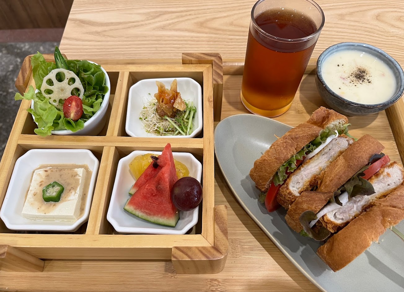整體環境舒適 服務態度很好???進店前門口右手邊可以自取放包包的置物籃 因為是一人作業所以餐點都要耐心等候 炸豬排丹麥吐司好好吃 加價購的黑糖鮮奶茶甜度適中也好喜歡 一杯不夠超想再續點
