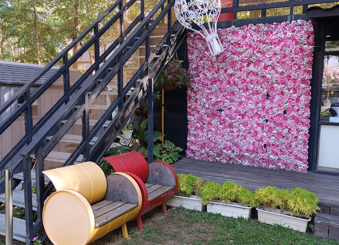 草坪上多了間漂亮貨櫃屋咖啡廳真好
