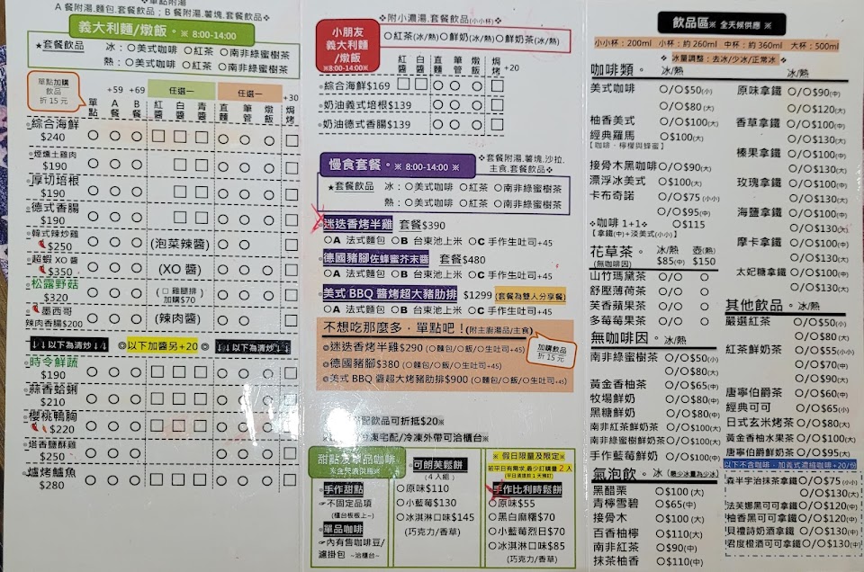 早午餐種類選擇多,menu寫的很詳細,這點真的很讚!不過如果照片上可以一併放入價格,那就更好了,我的早午餐好吃,份量超夠!