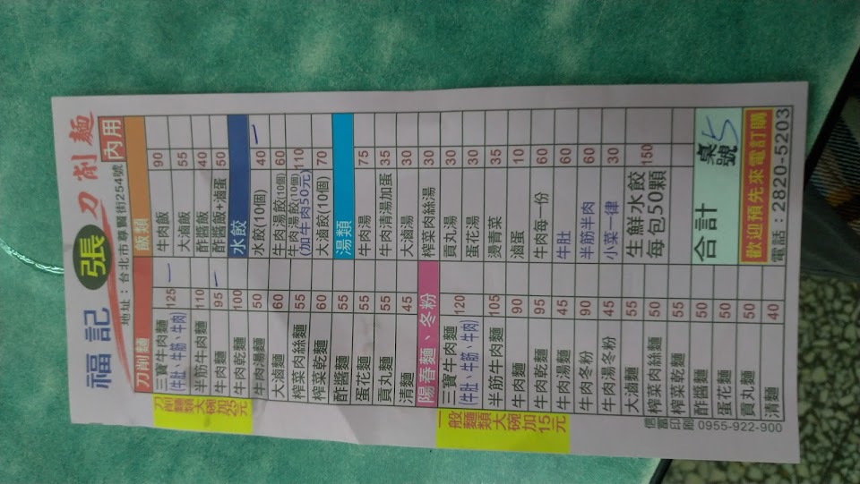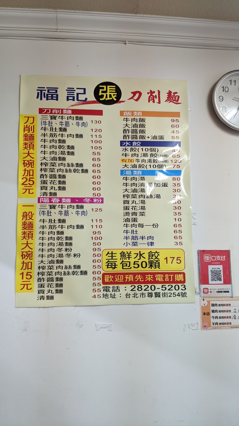2024最新在地推薦餐廳的菜單_張福記刀削麵的菜單、圖片