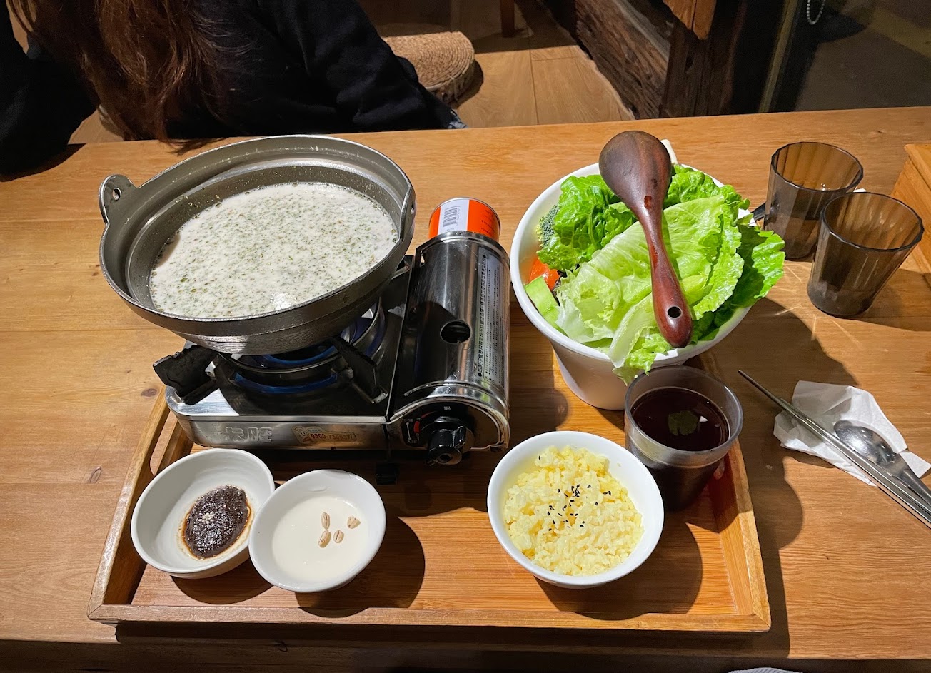 舒服的用餐環境,前菜的栗子地瓜沾優格很清爽,三杯鮮蔬粉絲煲的味道很剛好,蔬菜都是用蒸的伴入三杯味道,黑松露奶香鍋的湯頭非常棒,不會太過濃郁,非常推薦!