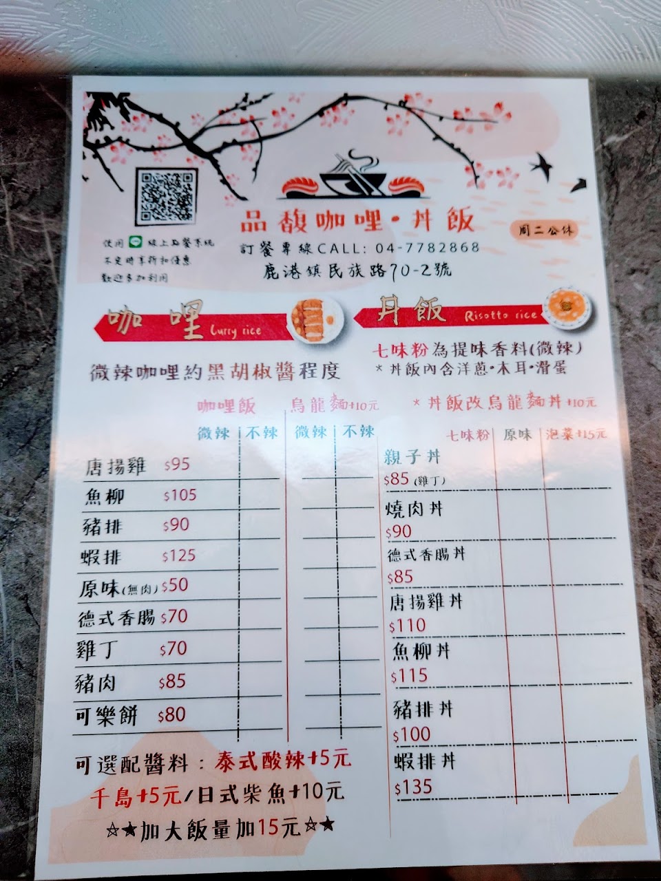 2024最新在地推薦餐廳的菜單_品馥咖哩·丼飯 鹿港店的菜單、圖片