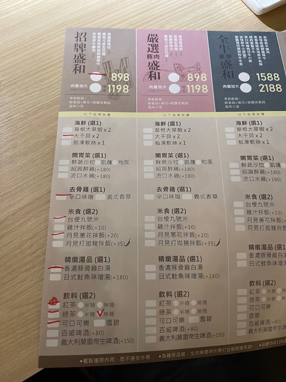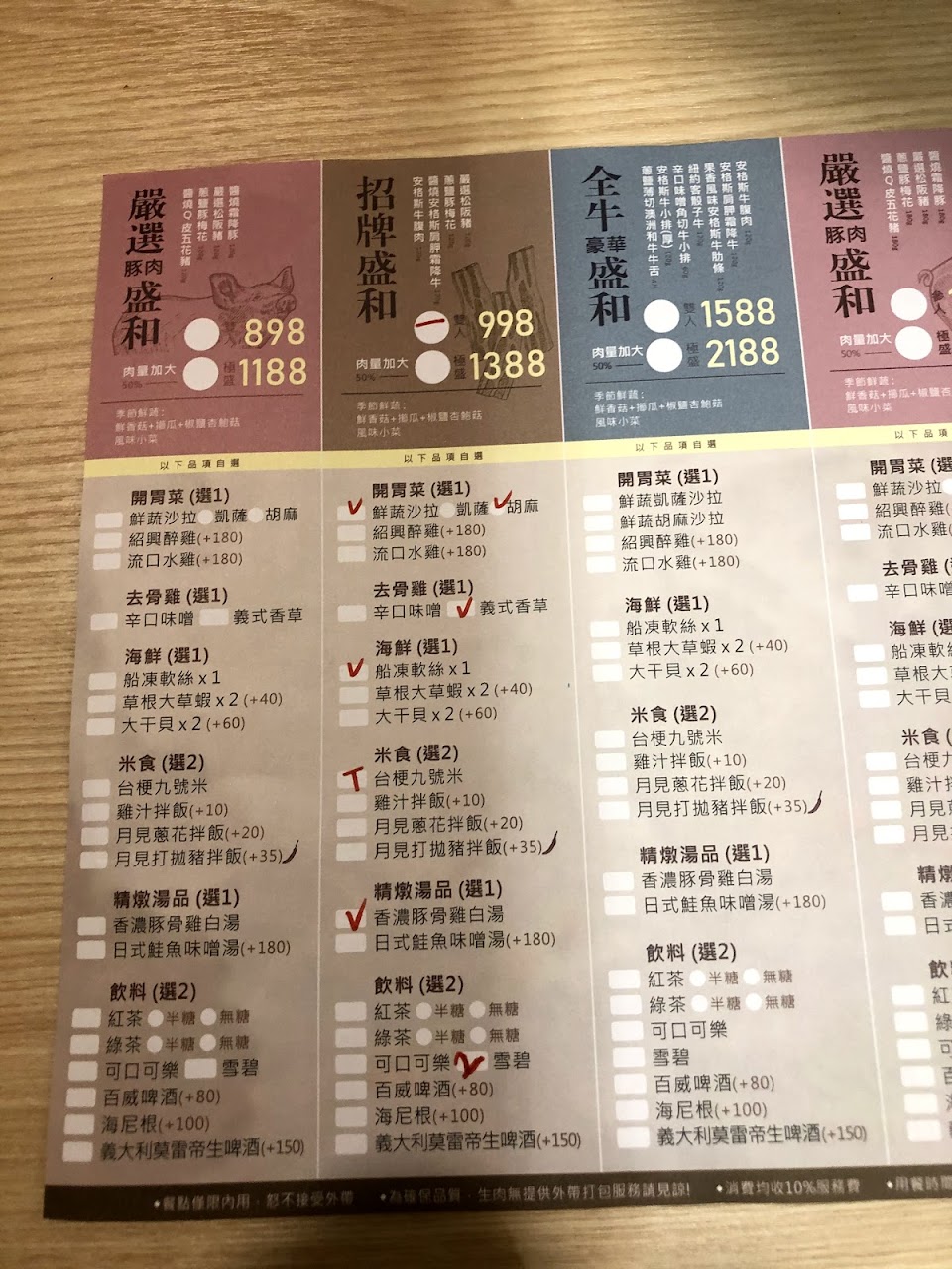 第一次來用餐,因為下班時間到店裡已經8:40分了,進去並沒有告訴我9點半就不能在點了,第一時間沒有說,就算了,吃的不開心,我坐的位置上面是冷氣孔會滴水,我以為會換位置,只有說已經有叫人來用了,邊吃邊滴,真的蠻獨攬,只有說吃的有滴到嗎?關心吃的一樣?先說我不是奧客,一種感覺就很差,吃的東西我認為可以……只是花了1398雙人的很浪費,因為不能在點了,真的不知道怎麼訓練員工的?如果一開始有告知,我就會先點了,臉書上面寫11點打烊,主要還是因為不能點,真的他媽的浪費我的錢,我真的連一顆⭐我真的不想給,我還沒吃飽就已經氣飽了,我永遠不會再來了!永遠不會,寧願去其他分店?這應該有史以來讓我最火大的店家