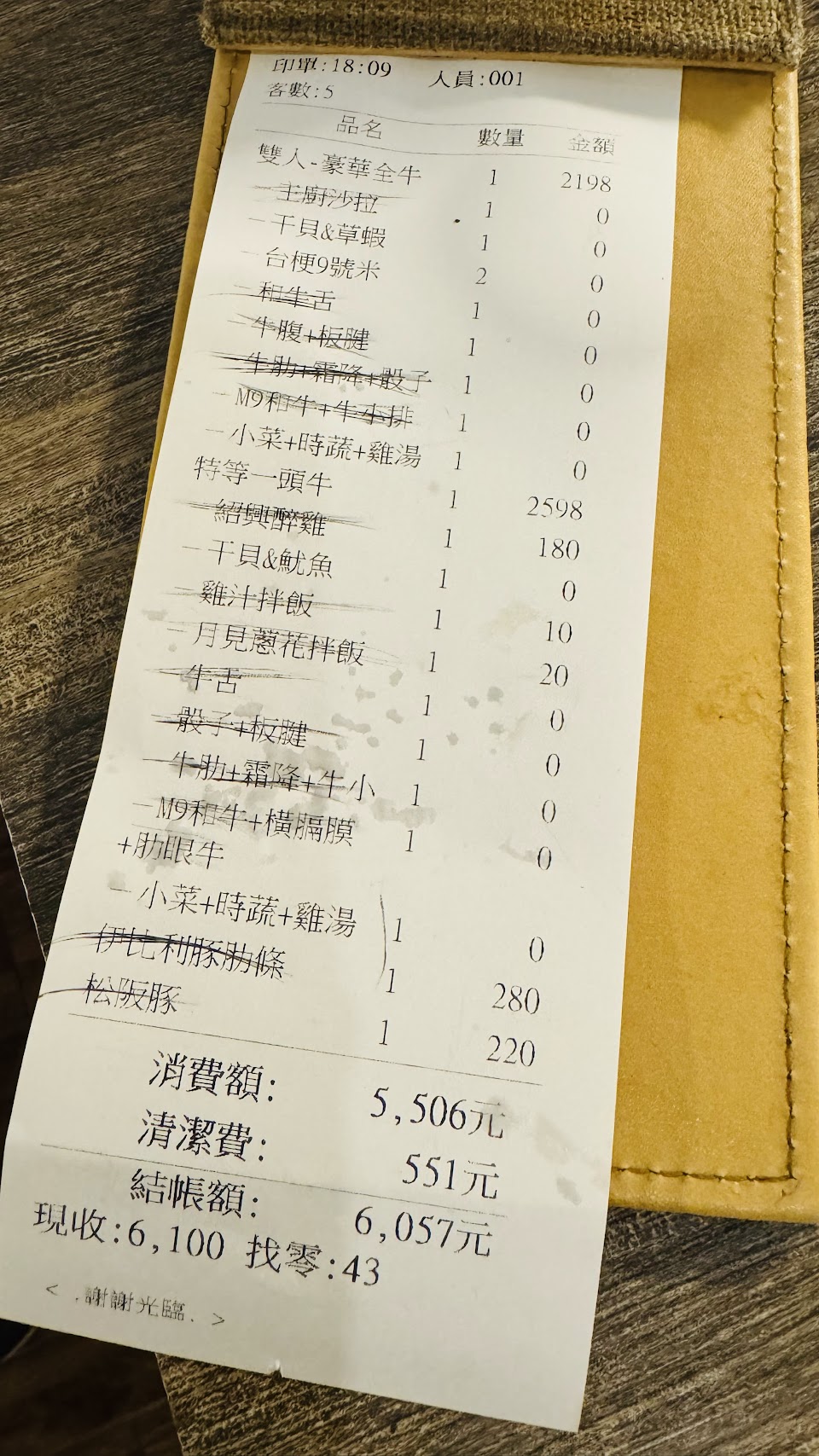 結帳態度非常差,烤盤也愛換不換,烤肉餐廳沒有飯,要換蔬菜給我,都不覺得哪裡不一樣嗎?一個是主食一個是副餐,可以這樣換?最後換一個麻油麵線,請問你麻油那麼苦是用苦瓜製造嗎?我吃個烤肉上面冷氣水一直滴?怕我觸發火災警報器?都吃完才要給我茭白筍,怕我跟你們說我要退錢嗎?你們廁所最誇張男廁從女廁出來,是你們標誌不清楚,還是其他客人有問題?這個價錢,服務品質這樣? 服務 內用 平均每人消費金額 超過 $2,000
