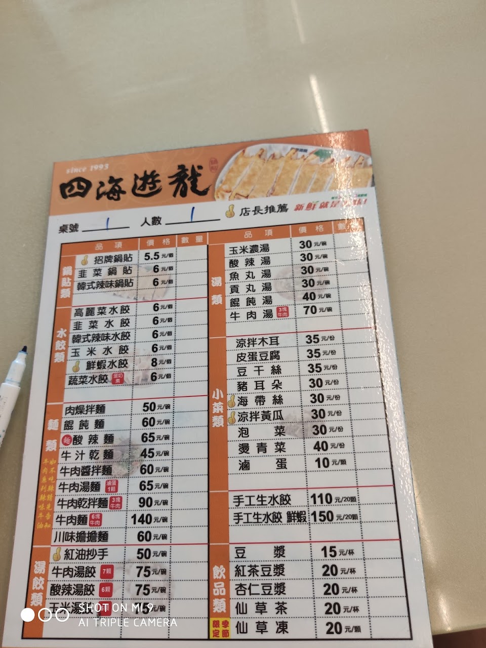 四海遊龍的酸辣湯跟豆漿,還有鍋貼好吃。