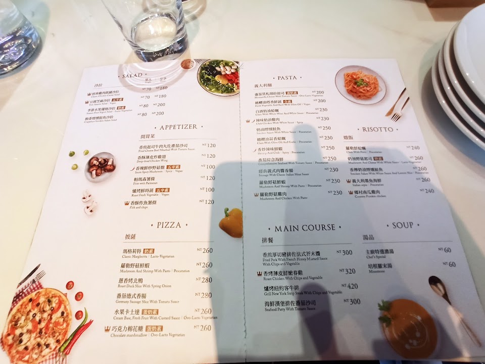 燻鮭魚沙拉很好吃! 羅宋湯也很好喝! 奶油玉米有比較膩一點點奶味蠻濃但也不錯喝! 雞翅被小朋友一掃而空想必也是很好吃吧! 披薩也是很好吃(每樣都好吃),因為當下吃不完外帶回飯店晚上吃冷掉的也好吃耶! 牛排更是不用說肉有汁又嫩! 義大利麵蛤蜊給好多也是新鮮好吃 墨魚燉飯也是新鮮好吃! 當天因為父親節活動還有打折吃得很開心!