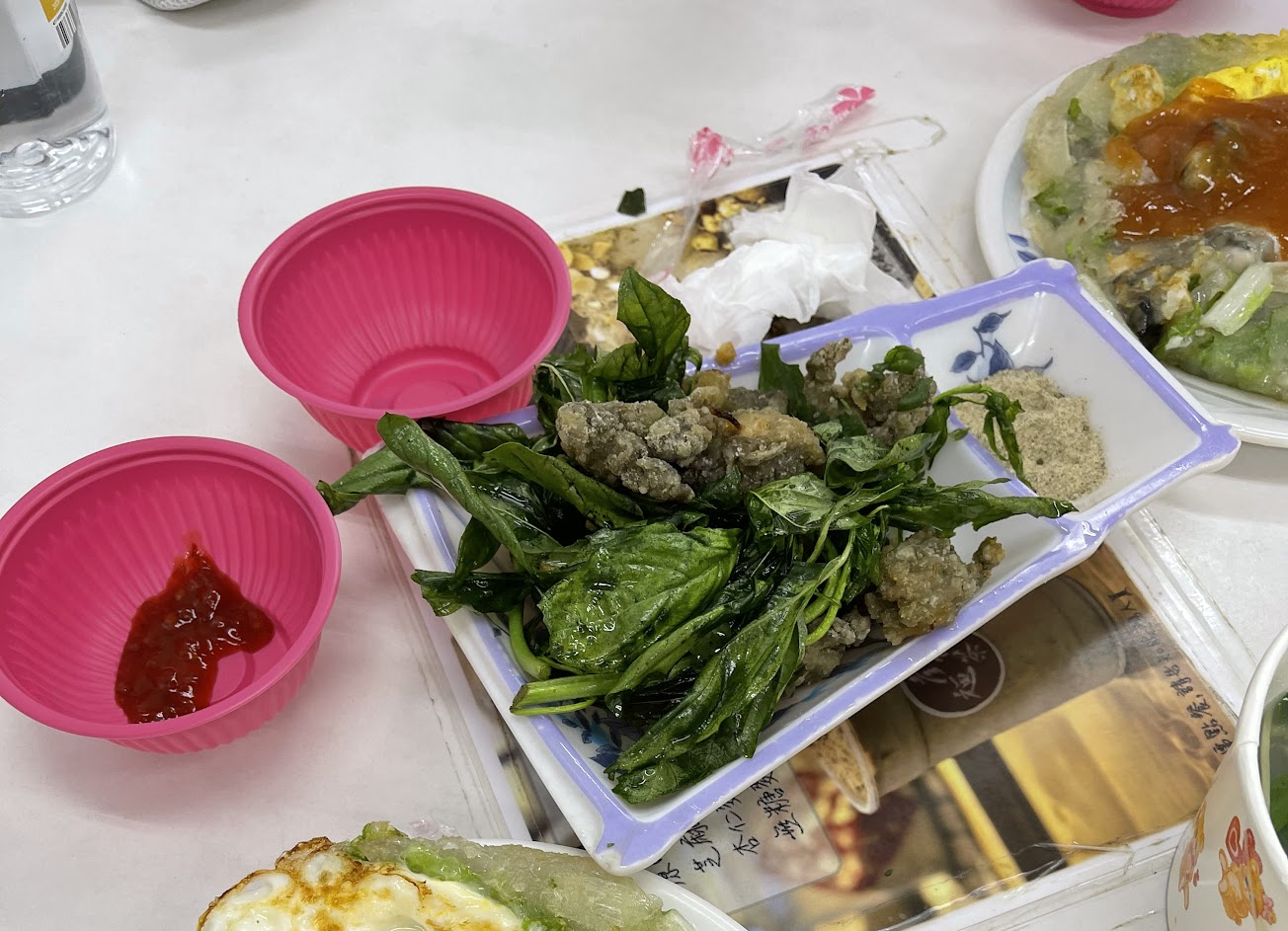 蚵仔煎的粉超濃厚,連蔬菜都被粉漿包裹住,蚵仔也事先裹粉才煎,整個吃起來很怪,感覺是在吃太白粉煎;蘿蔔糕雖有恰恰,但沒蘿蔔味也沒什麼米香,且一片就$40,價格小貴,唯一覺得蚵仔煎醬汁還不錯