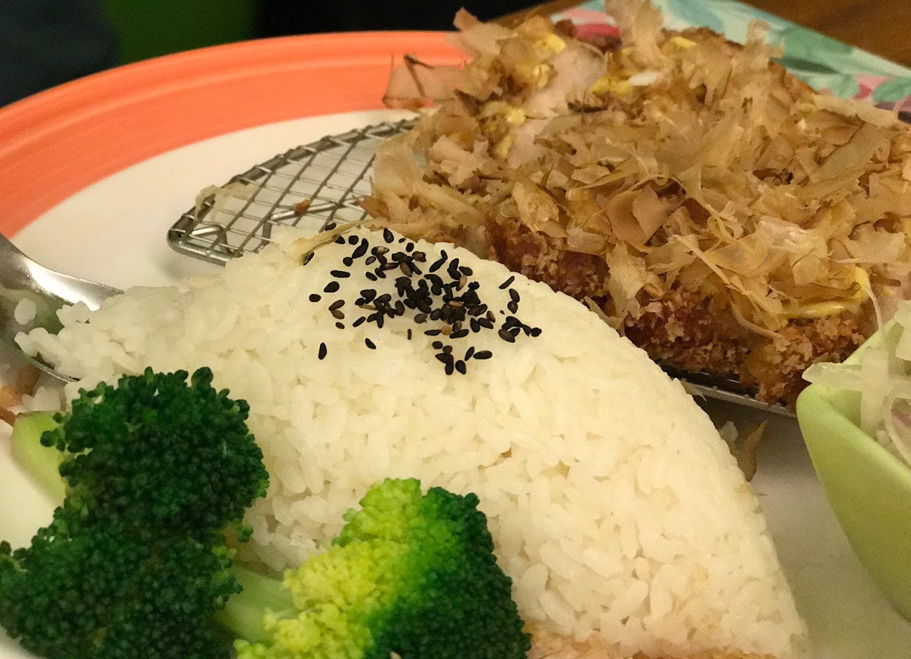 今天吃了「章魚燒豬排」,豬排很好吃,但餐點是單調了一點。