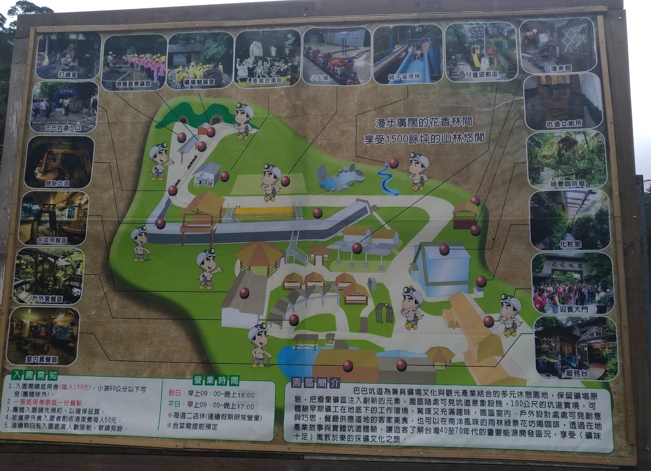 很有趣的地方,了解礦工歷史跟辛苦,走坑道非常有趣。 有些地方比較缺乏管理,感覺有點髒,男廁比女廁簡陋很多,女廁裝潢的很美。 溜滑梯需要保養了?溜到下面的時候大家都卡住不會動了。 門票150 可抵餐飲100元 覺得挺划算的,服務生很客氣 是很不錯的地方