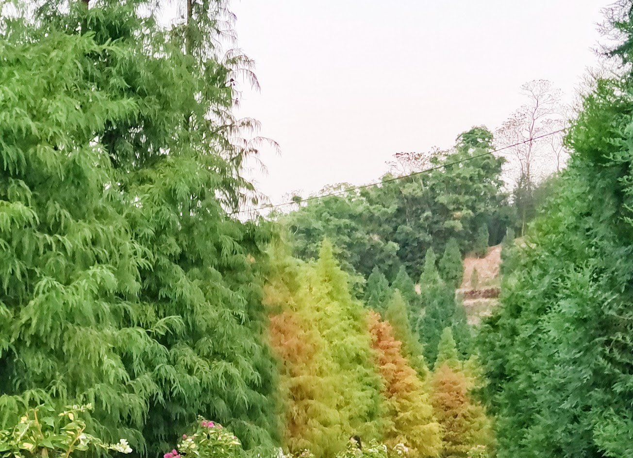 雖然微雨無陽光增色,但是在手機上的色調變成清新版,也很可愛,俯瞰像一棵棵彩色聖誕樹。