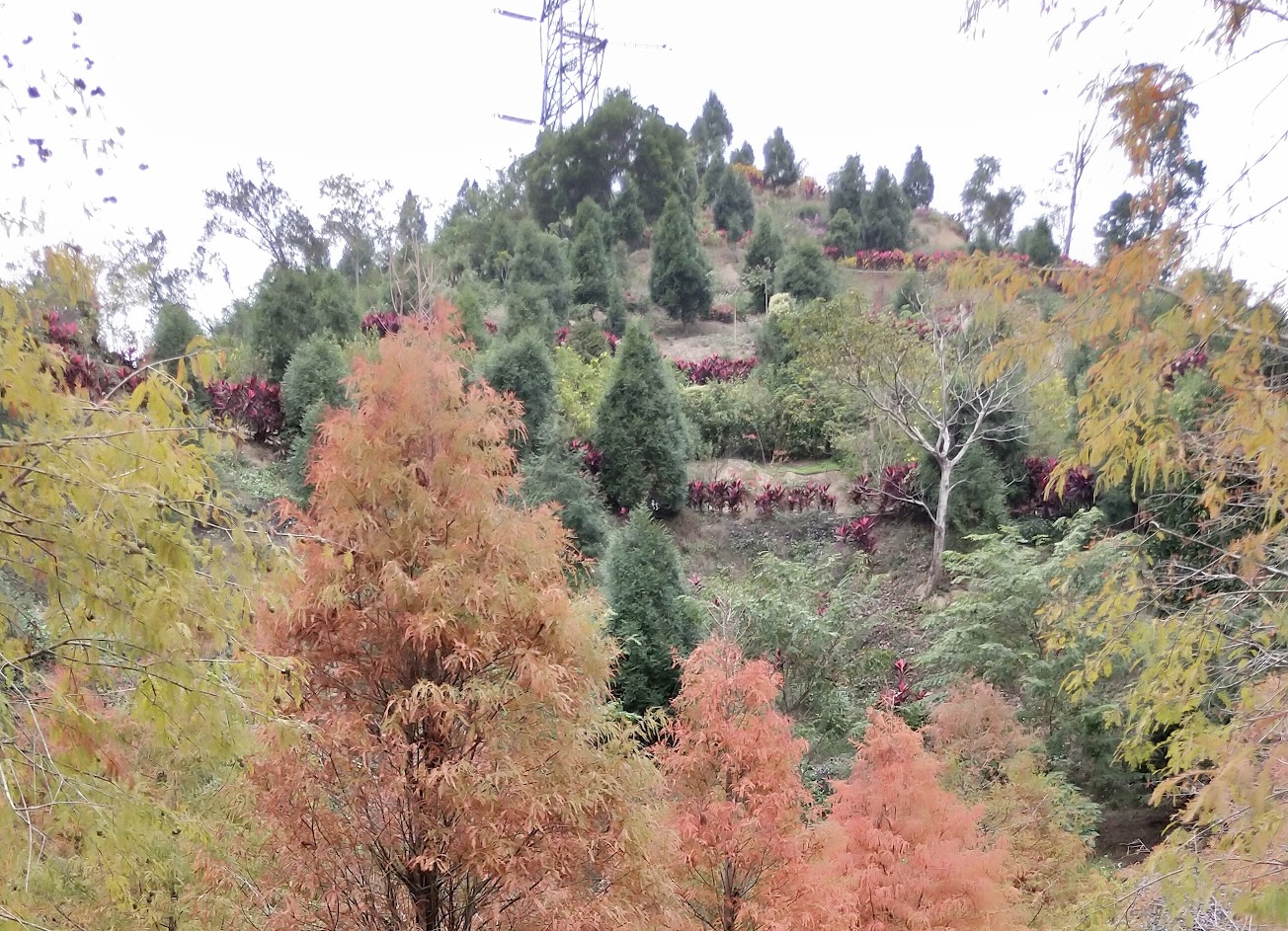 落羽松的部分是前面一塊長長的水池,很寬,但從正面拍起來就沒有很深。可以走到後面的瞭望台拍,但就會暴露對面的鐵皮屋顏色實在漆得不好看(亮藍)
