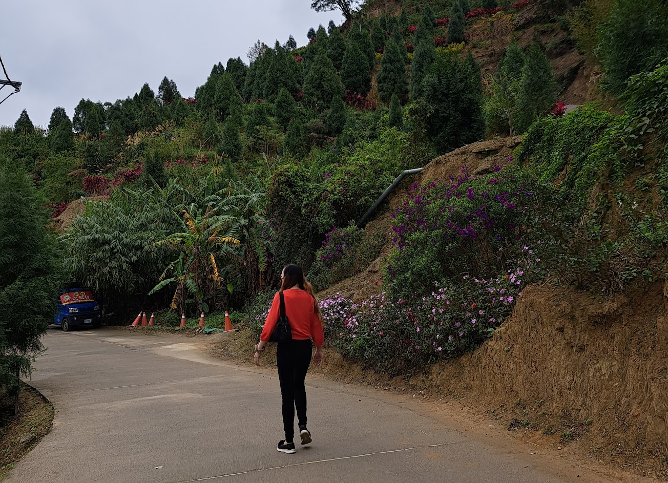 中繼站會有一些小攤販,我們在停好車從這裡走路大約只需要5分鐘就能走到落雨松秘境。