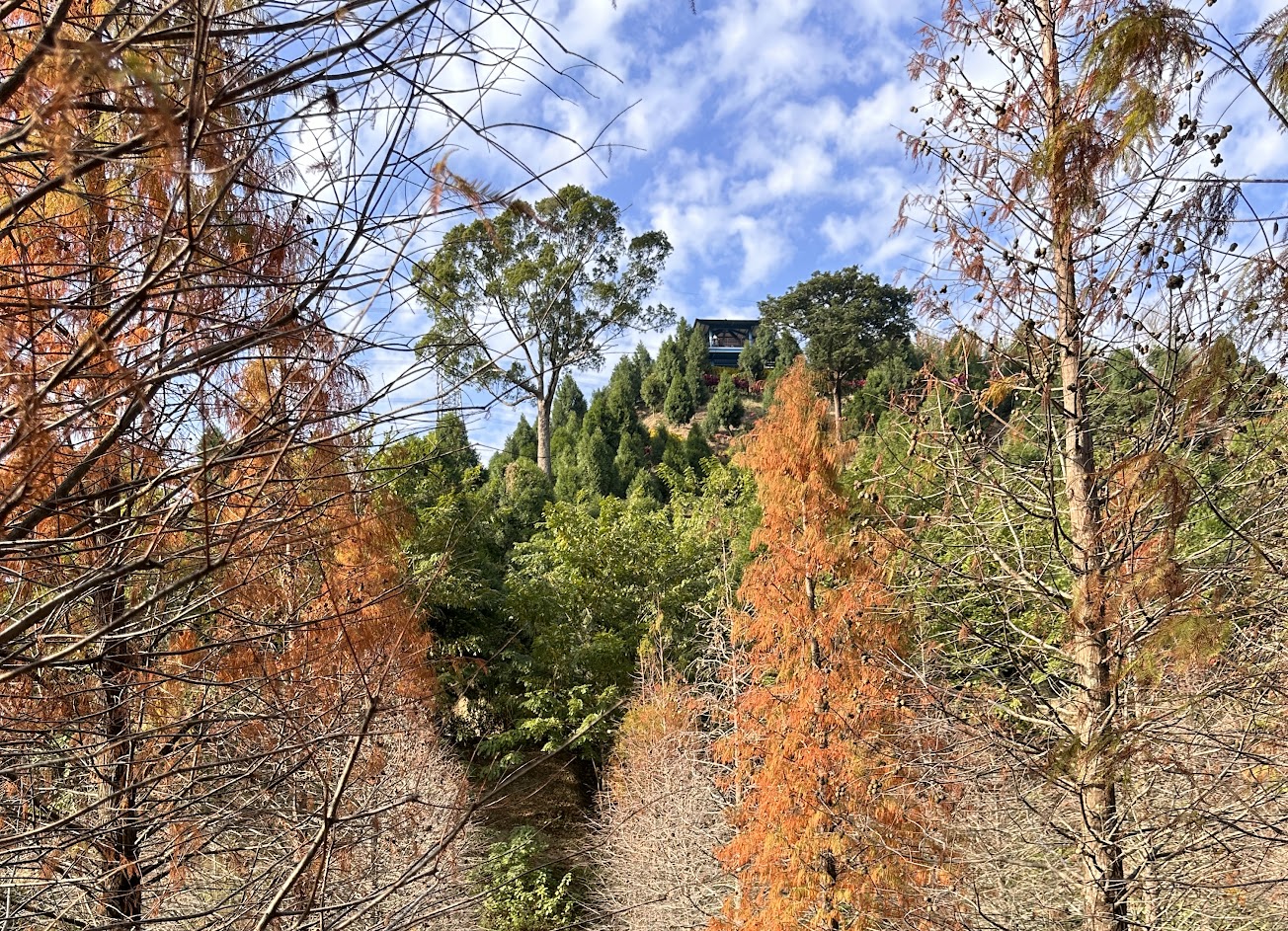 2.可以在鐵皮屋3樓或山坡用俯視角看整片落羽松.