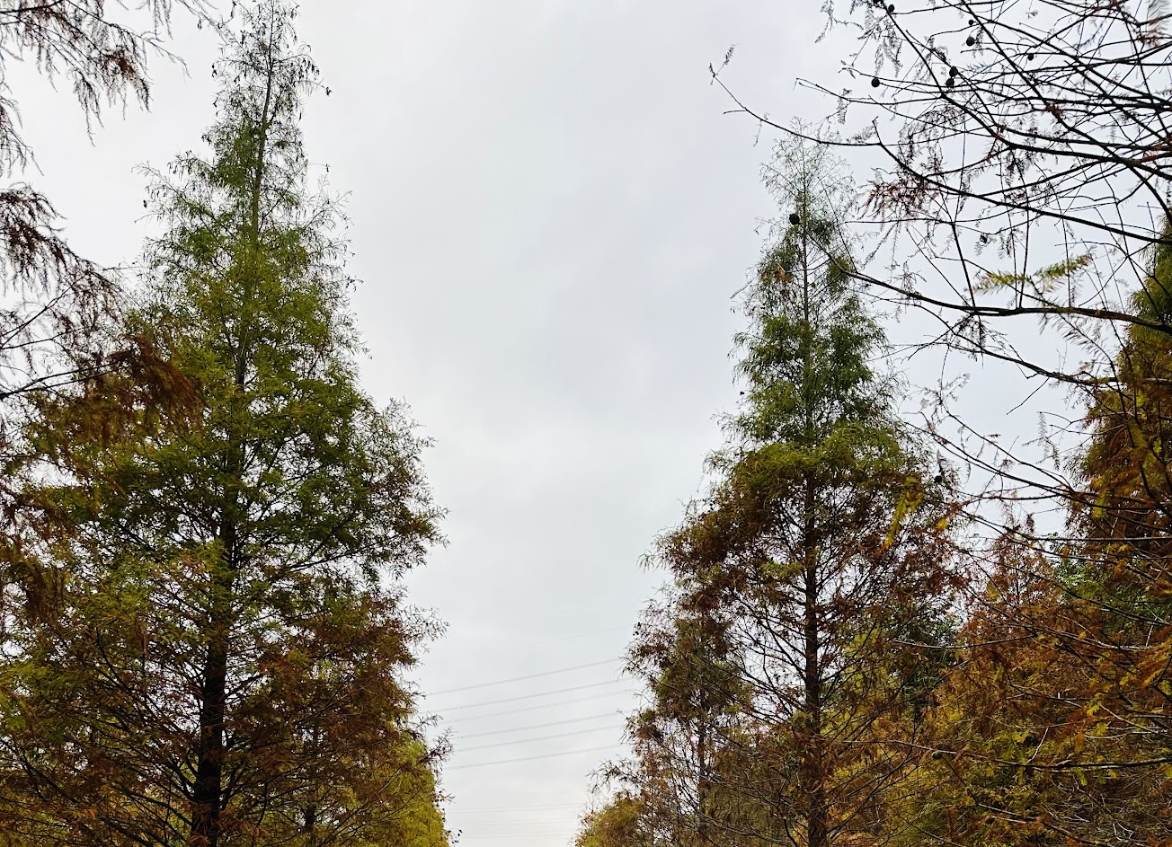落羽松尚未發紅,係人工造景,景色並無特色。