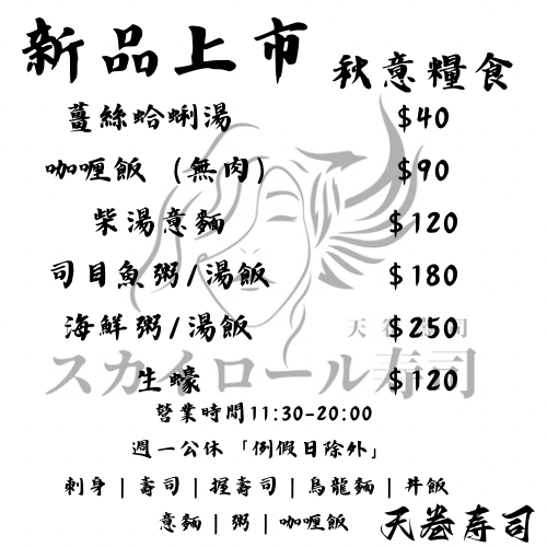 2024最新在地推薦餐廳的菜單_天卷壽司專門店的菜單、圖片