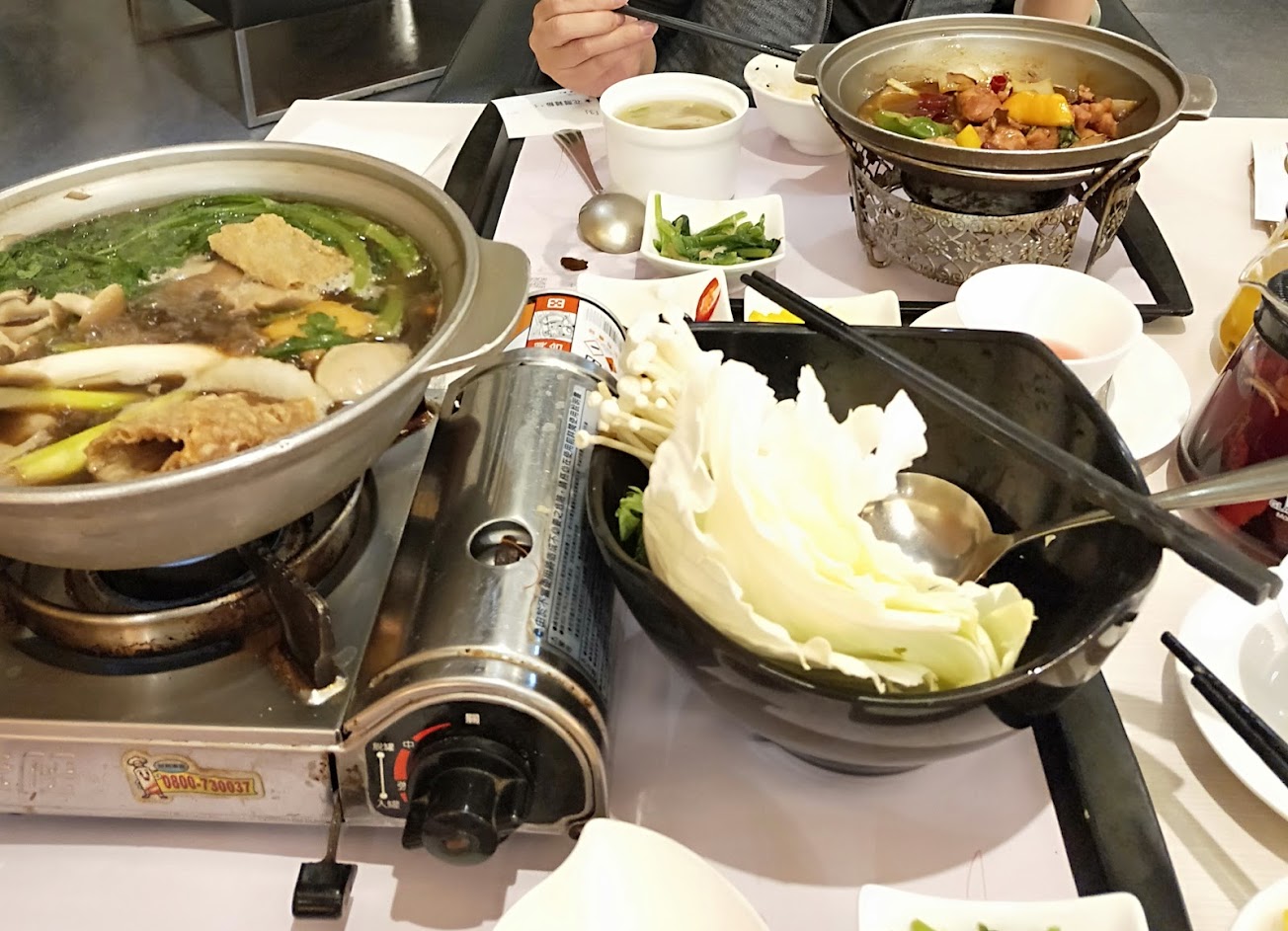 門前有提供停車位,但常座無虛席。火鍋配菜出色量多,燉飯入味可口,值得推薦!