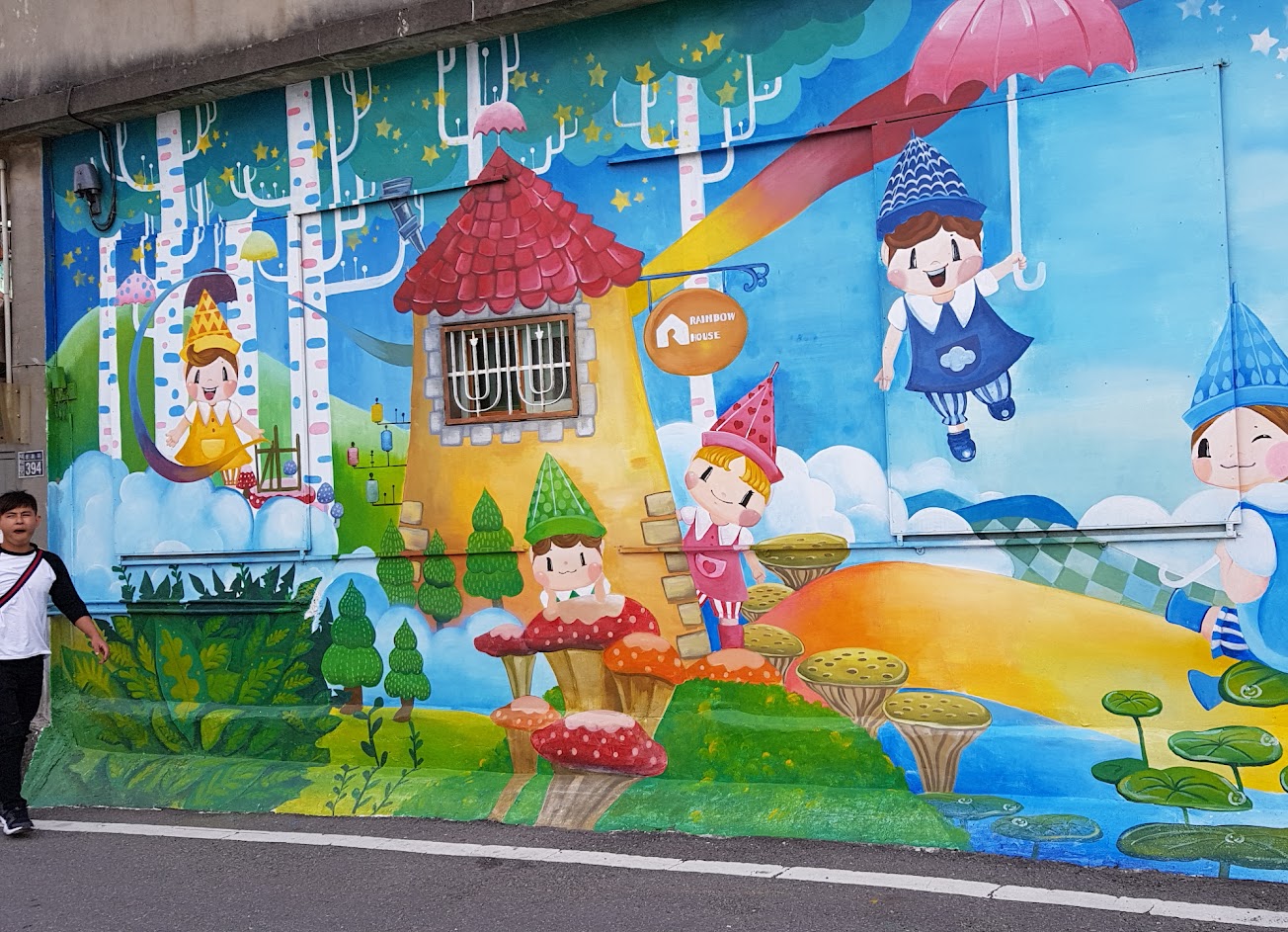 在鄉下地區有越來越多的牆壁彩繪,近年走向則逐漸往3D彩繪為主軸,走在這裡不僅是看到農耕生活的趣圖卻也同時是身在其境般地感受,真的要好好的讚嘆畫家的巧手天賦,讓每個圖拍照起來特別的寫實;除了3D繪圖之外還搭配了一些藝術造景,有高掛天空的彩虹傘、創意雨傘樹、繽紛色彩的貨櫃屋⋯等等,集結了許多創意。