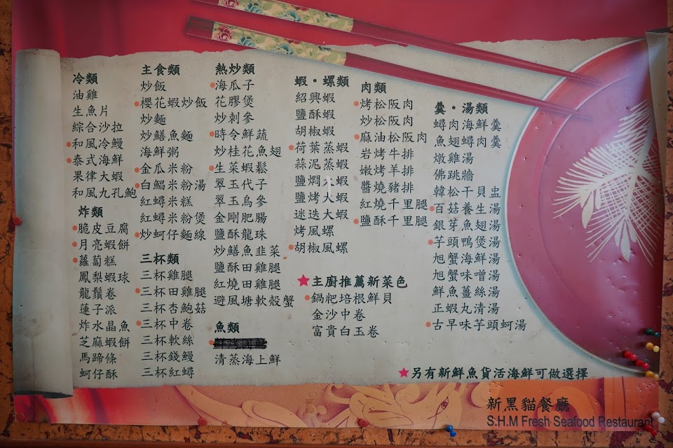 家人本來要訂隔壁的大中華,我跟他們說訂隔壁新黑貓好吃,才改訂的,覺得很對不起家人,讓他們過年來餐廳吃這麽差的菜色。氣到忘記拍照了~~還好記的拍了菜單。