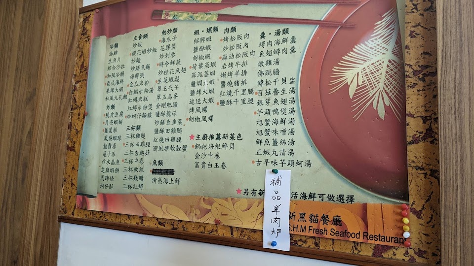 家人本來要訂隔壁的大中華,我跟他們說訂隔壁新黑貓好吃,才改訂的,覺得很對不起家人,讓他們過年來餐廳吃這麽差的菜色。氣到忘記拍照了~~還好記的拍了菜單。