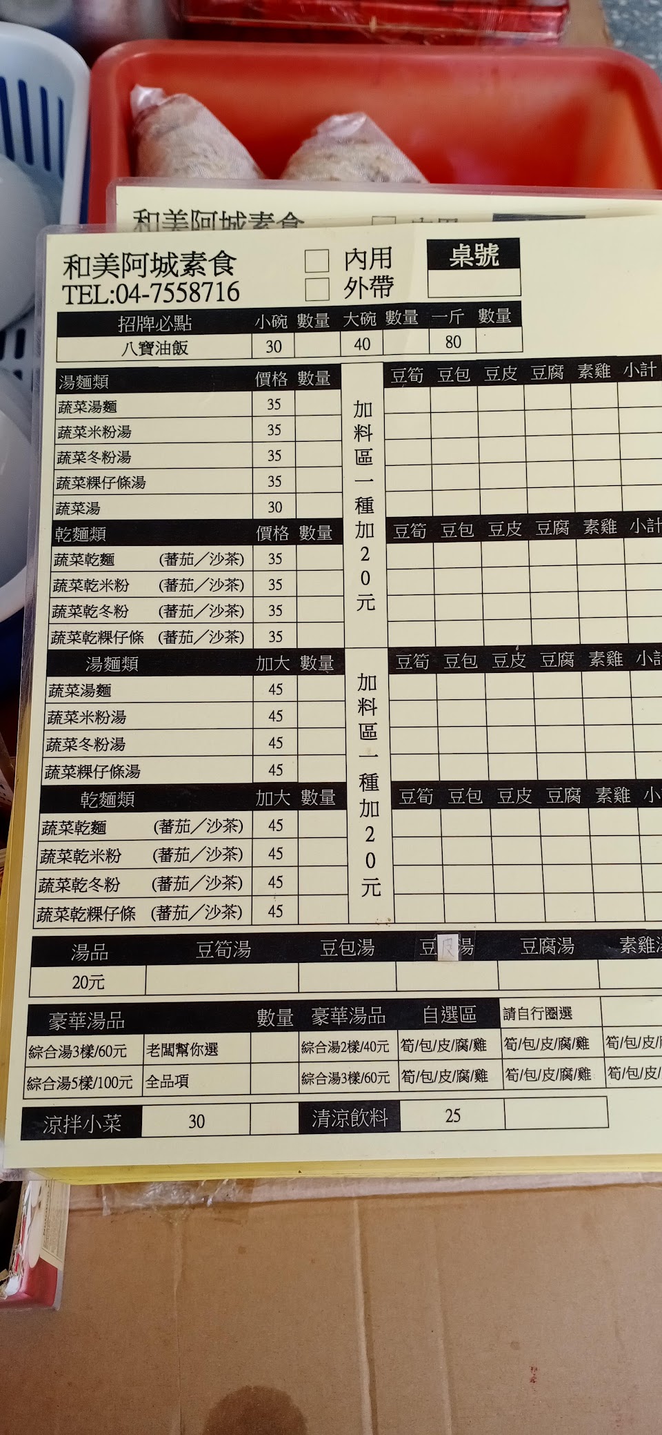 2024最新在地推薦餐廳的菜單_彰化和美「阿城素食」的菜單、圖片